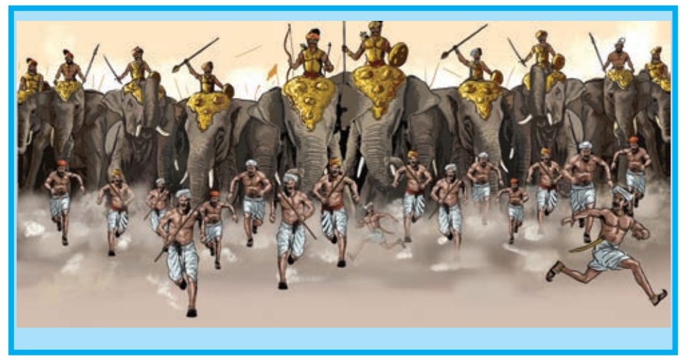 கலிங்க வீரர்கள் ஒருவரை ஒருவர் முந்திக் கொண்டு ஓடினர். தம்