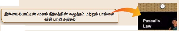 மூலம் நீர்மத்தின் அழுத்தம் மற்றும் பாஸ்கல் விதி பற்றி அறிதல்