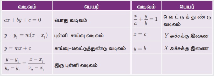 வெவ்வேறு வடிவில் உள்ள நேர்க்கோட்டின் சமன்பாடு