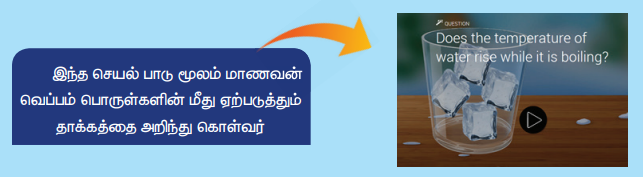 இந்த செயல்பாடு மூலம் மாணவன் வெப்பம் பொருள்களின் மீது ஏற்படுத்தும் தாக்கத்தை அறிந்து கொள்வர்