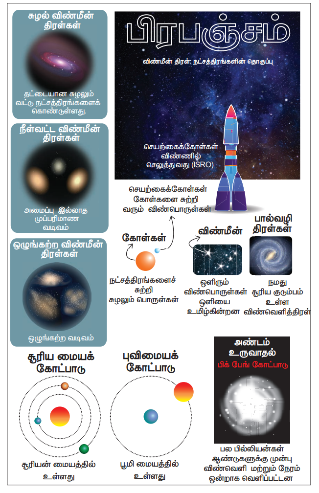 ❖ அண்டத்தில் விண்மீன் திரள்கள், கோள்கள், நட்சத்திரங்கள், விண்கற்கள், துணைக்கோள்கள், பருப்பொருள் மற்றும் ஆற்றல் அடங்கியுள்ளது.