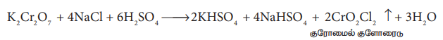 K2Cr2O7 + 4NaC1 + 6H2SO4 → 2KHSO4 + 4NaHSO4 + 2CrO2C12 ↑ + 3 H2O
