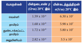 பொருட்களின் மின்கடத்துத்திறன் மற்றும் மின்தடைஎண்களின் மதிப்பு