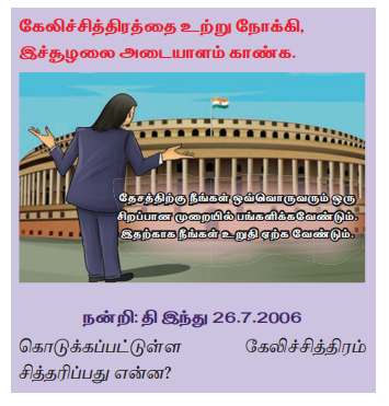 * ஆசிரியர் வகுப்பை இரண்டு குழுவாக பிரிக்கவும். குடியரசுத்தலைவர் மற்றும் பிரதமர் மற்றும் அவருடைய குழுவின் தனித்துவத்தை விவாதத்திற்கு ஏற்பாடு செய்யவும்.