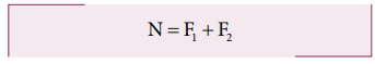 சுழலியக்க மையத்தை பற்றிய நிகர விசை சுழியாகும், -F1 + N – F2 = 0