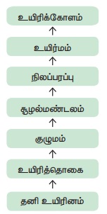 விடை : இ) குழுமம் → சூழல் மண்டலம் → நிலத்தோற்றம் → உயிர்மம்