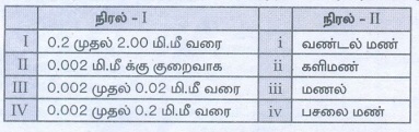 அளவும், நிரல் II ல் மண்ணின் ஒப்பீட்டளவும் கொடுக்கப்பட்டுள்ளது. கீழ்கண்டவற்றில்