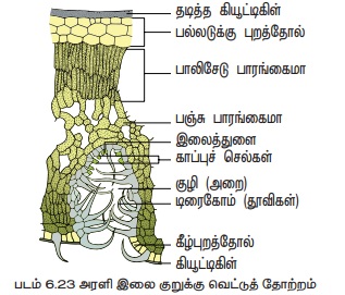 * தாவர உடலத்தின் தரைமேல் பகுதிகள் தடித்த கியூட்டிக்கிளை