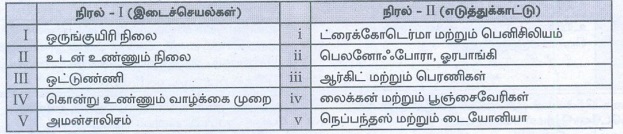 நிரல் 1 மற்றும் நிரல் II ல் சரியாகப் பொருந்தியுள்ளவற்றைக் கண்டுபிடிக்கவும்.