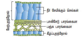 * இலையிடைத் திசுவானது பாலிசேடு மற்றும் பஞ்சு திசுவாக நன்கு