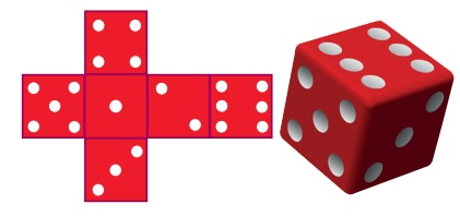 குறிப்பு: ஒரு சீரான பகடை என்பது அதன் எதிரெதிர் பக்கங்களில் உள்ள எண்களின் கூடுதல் 7 ஆக இருக்கவேண்டும்.