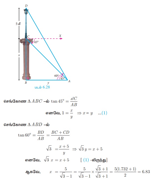 எனவே, கோபுரத்தின் உயரம் = 6.83 மீ.
