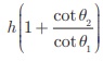 ஒரு தெருவில் உள்ள ஒரு வீட்டின் சன்னலிலிருந்து, (சன்னல் தரைக்கு மேல் h மீ உயரத்தில் உள்ளது) தெருவின் எதிர்ப் பக்கத்தில் உள்ள மற்றொரு வீட்டின் உச்சி, அடி ஆகியவற்றின் ஏற்றக்கோணம், இறக்கக்கோணம் முறையே θ1 மற்றும் θ2 எனில், எதிர்ப்பக்கத்தில் அமைந்த வீட்டின் உயரம்