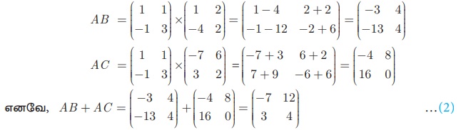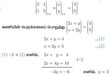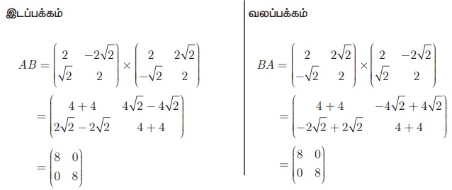 தீர்க்கப்பட்ட எடுத்துக்காட்டு கணக்குகள் | கணிதம் - அணிகளின் பெருக்கல் பண்புகள் | 10th Mathematics : UNIT 3 : Algebra