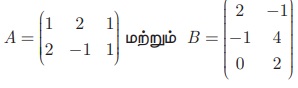 எனில் AB மற்றும் BA காண்க. மேலும் AB = BA என்பது சரியா என ஆராய்க.