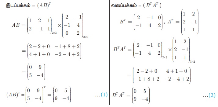 (1), (2) --லிருந்து (AB)T = B T AT என நிரூபிக்கப்பட்டது.