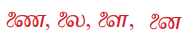 இருபதாம் நூற்றாண்டுவரை ணா,றா, னா ஆகிய எழுத்துகளை என எழுதினர். அதே போல ணை, லை, ளை, னை ஆகிய எழுத்துக்களை