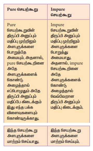 இருந்து நாம் pure மற்றும் impure செயற்கூறுகளின் வேறுபாட்டை பின்வருமாறு காணலாம்.