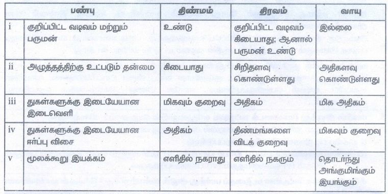 திரவ மற்றும் வாயுப்பொருள்களின் பண்புகளை வேறுபடுத்துக.
