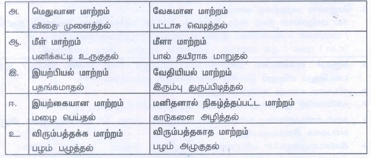 சுற்றி நடக்கும் மாற்றங்களிலிருந்து கீழே கொடுக்கப்பட்டுள்ள ஒவ்வொரு மாற்றத்திற்கும்