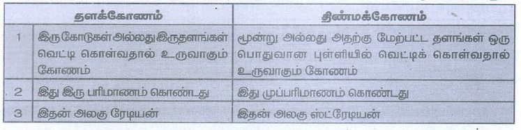1. திண்மக்கோணம் என்ற ஸ்ட்ரேடியன் (Sr) அலகில் அளக்கப்படுகிறது.
