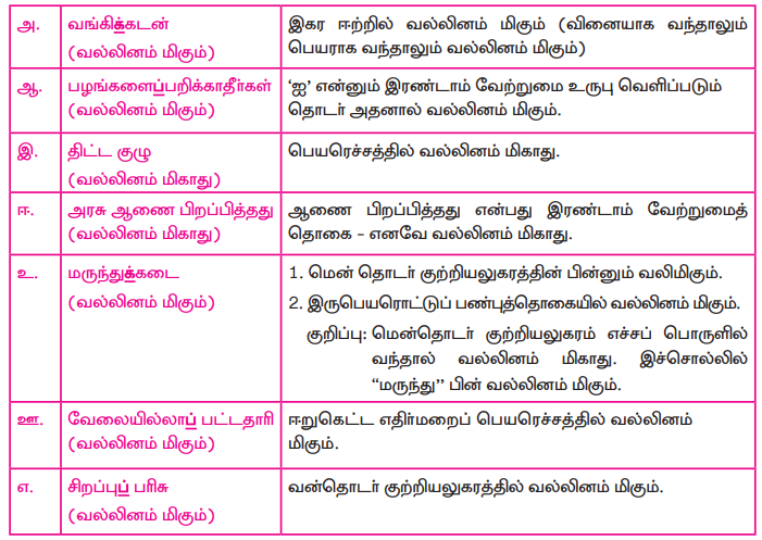 4. கீழ்க்காணும் தொடர்களில் வல்லினம் மிகும் , மிகா இடங்களைக் கண்டறிந்து அதற்கான இலக்கணம் அறிக.