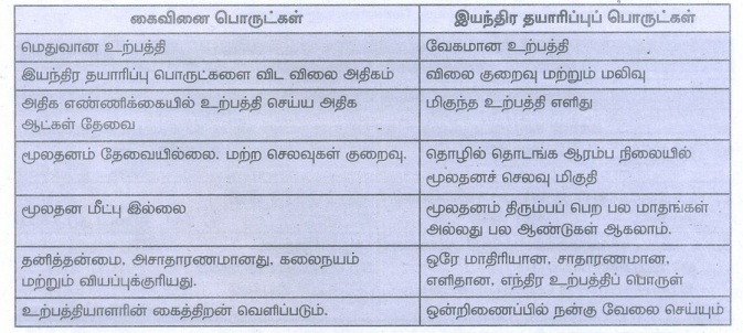 கைவினைப்பொருட்களும், இயந்திர தயாரிப்புப் பொருட்களும் வேறுபடுகின்றன.