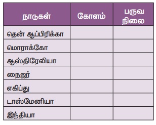 நாடுகளில் டிசம்பர் மாத பருவநிலை மற்றும் அது எந்த கோளத்தில் அமைந்துள்ளது என்பதனை
