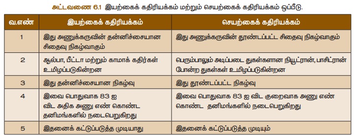 கதிரியக்கம் மற்றும் செயற்கைக் கதிரியக்கம் ஒப்பீடு.