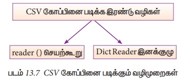 CSV கோப்பின் உள்ளடக்கத்தை படிக்க CSv.reader() என்ற முறையானது