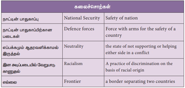 பாதுகாப்பு மற்றும் வெளியுறவுக் கொள்கை | அலகு 6 | குடிமையியல் | எட்டாம் வகுப்பு சமூக அறிவியல் - மீள்பார்வை, கலைச்சொற்கள் | 8th Social Science : Civics : Chapter 6 : Defence & Foreign Policy