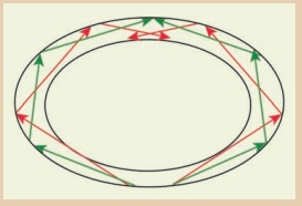 எங்கு மோதினாலும் பரவளயத்தில் ஒரு குவியப் புள்ளியிலிருந்து மற்றொரு குவியப் புள்ளியில்