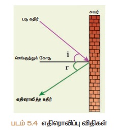 · படுகோணம் ∠i மற்றும் எதிரொலிப்புக் கோணம் ∠r ஆகியவை சமமாக இருக்கும்.