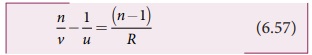 PO = -u, PI = +v மற்றும் PC = +R எனவே, சமன்பாடு (6.55)ஐ பின்வருமாறு எழுதலாம்,
