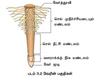 தாவரவியல் - வேரின் பகுதிகள் | 11th Botany : Chapter 3 : Vegetative Morphology of Angiosperm