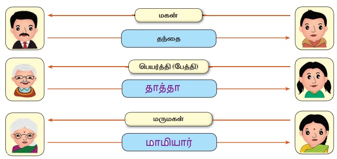 இன்னும் பல உறவுமுறைகளை இணைத்து மேலும் உரையாடலைத் தொடரலாம். குழந்தைகள் தங்கள் தாய், தந்தை வழி உறவு முறைகளுடன் தங்களுக்கான உறவை அறியச் செய்க.