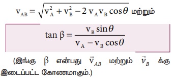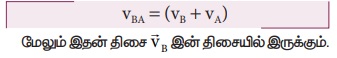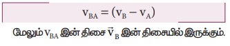 A, B என்ற இரண்டு பொருள்கள் படத்தில் உள்ளவாறு VA மற்றும் VB. என்ற சீரான திசைவேகங்களில் நேர்க்கோட்டுப்பாதையில் தரையைப் பொருத்து ஒரே திசையில் செல்கின்றன.