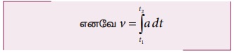 dv/dt = a இதிலிருந்து dv = adt என எழுதலாம்,