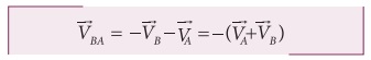 இதே போன்று B காரினைப் பொருத்து A காரின் சார்புத் திசைவேகம்