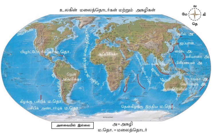 படம் 5.9 உலகின் கடலடி மலைத்தொடர்கள் மற்றும் அகழிகள்