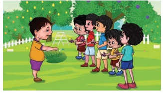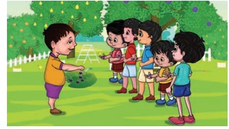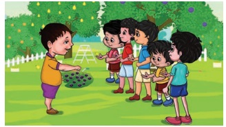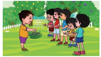 அவன் எண்ணிப் பார்த்தபோது அவற்றில் 20 பழங்கள் இருந்தன. இரவி தன்னுடைய 5 நண்பர்களுக்கு அவற்றைத் தர நினைத்தான். அவர்களுக்கு ஒவ்வொரு பழமாகக் கொடுத்தான்.