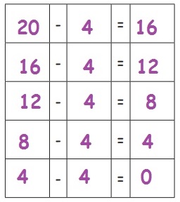 தொடர் கழித்தல் கூற்று : 20 – 4 – 4 – 4 – 4 – 4