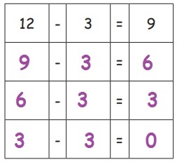 ஒன்றொன்றாகக் கொடுத்தால் 12 – 3 = 9 என எழுதலாம்.