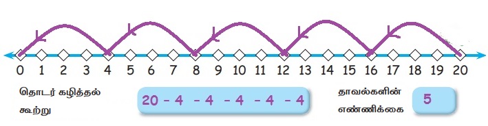 தொடர் கழித்தல் கூற்று : 20 – 5 – 5 – 5 – 5
