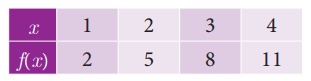 f = {(1,2), (2,5), (3,8), (4,11)}