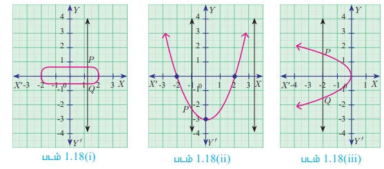 படம்.1.18 (i) மற்றும் படம் 1.18 (iii) வரைபடங்களில், ஒரு குத்துக்கோடு, வரைபடத்தை P மற்றும் Q ஆகிய இரு புள்ளிகளில் வெட்டுவதால் இவை ஒரு சார்பினைக் குறிக்காது.