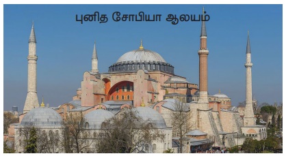 புனித சோபியா ஆலயம் கி.பி. ஆறாம் நூற்றாண்டின் - இடைப்பகுதியில் கட்டப்பட்டதாகும். அக்கால ஐரோப்பாவின் மிக நேர்த்தியான கட்டடமான இத்தேவாலயம் அதன் புதுமையான கட்டடக்கலை நுணுக்கங்களுக்கு பெயர் பெற்றதாகும். கான்ஸ்டாண்டிநோபிள் நகரை உதுமானிய துருக்கியர் கைப்பற்றியபோது இத்தேவாலயம் ஒரு மசூதியாக மாற்றப்பட்டது.