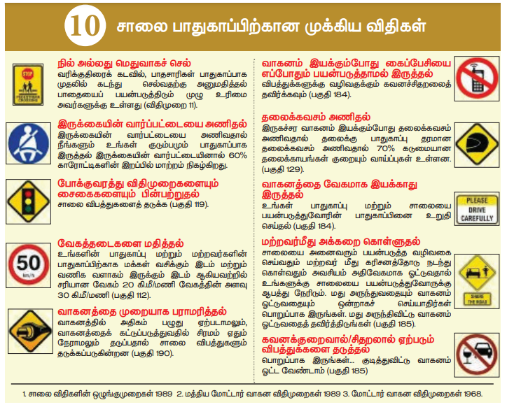 10. சாலை பாதுகாப்பிற்கான முக்கிய விதிகள்