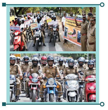 • சாலைப் பாதுகாப்பு வாரம் போக்குவரத்துக் குறியீடுகள் முதலியவற்றை அறிந்து கொள்ளுதல்