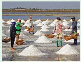 உப்பு சேகரித்தலில் மரத்தாலான – நீண்ட கைப்பிடியும், பற்களும் கொண்ட பழங்காலக் கருவி பயன்படுத்தப்படுகிறது. இதற்கு உப்பு வாரி என்று பெயர்.